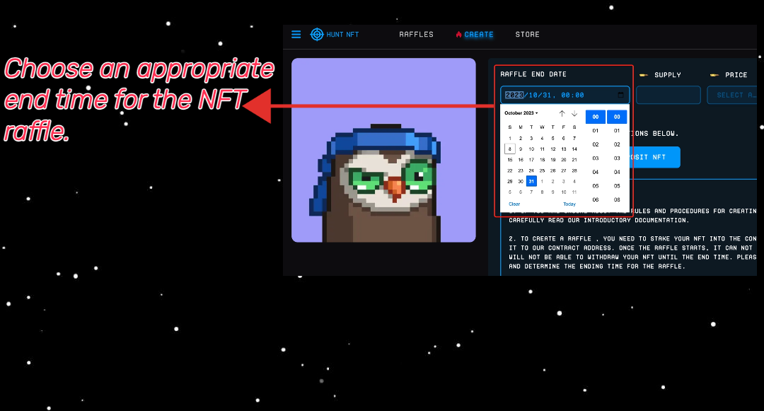 2. Choose an appropriate end time for the NFT raffle