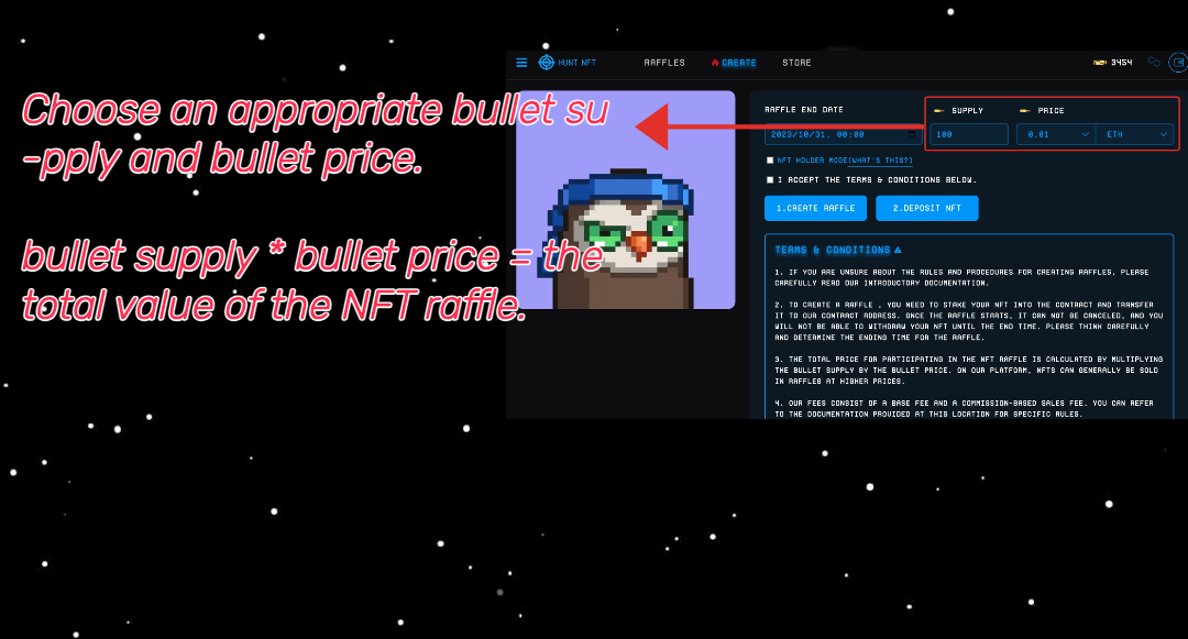 > 3. The total price for participating in the NFT raffle is calculated by multiplying the bullet supply by the bullet price. On our platform, NFTs can generally be sold in raffles at higher prices.
