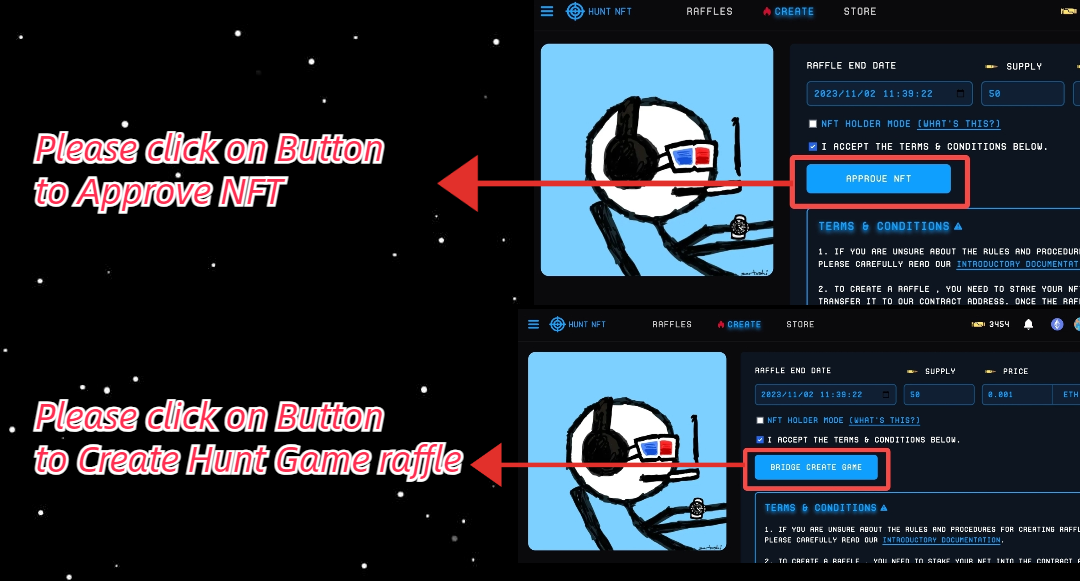 6. Please click on Button to Approve NFT and Crate hunt game raffle.